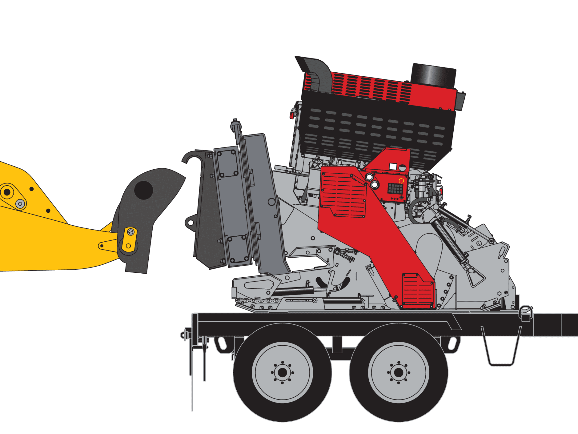 Tilts right or left up to 9° for grinding angled road surfaces. Shifts up to 36″ for accurate curb milling. All three functions are hydraulically controlled.